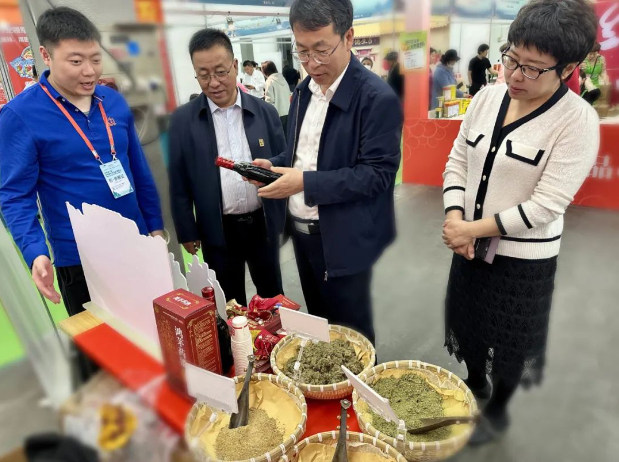 内蒙古老字号协会秘书长-刘彦辰参观和记娱乐药酒展位